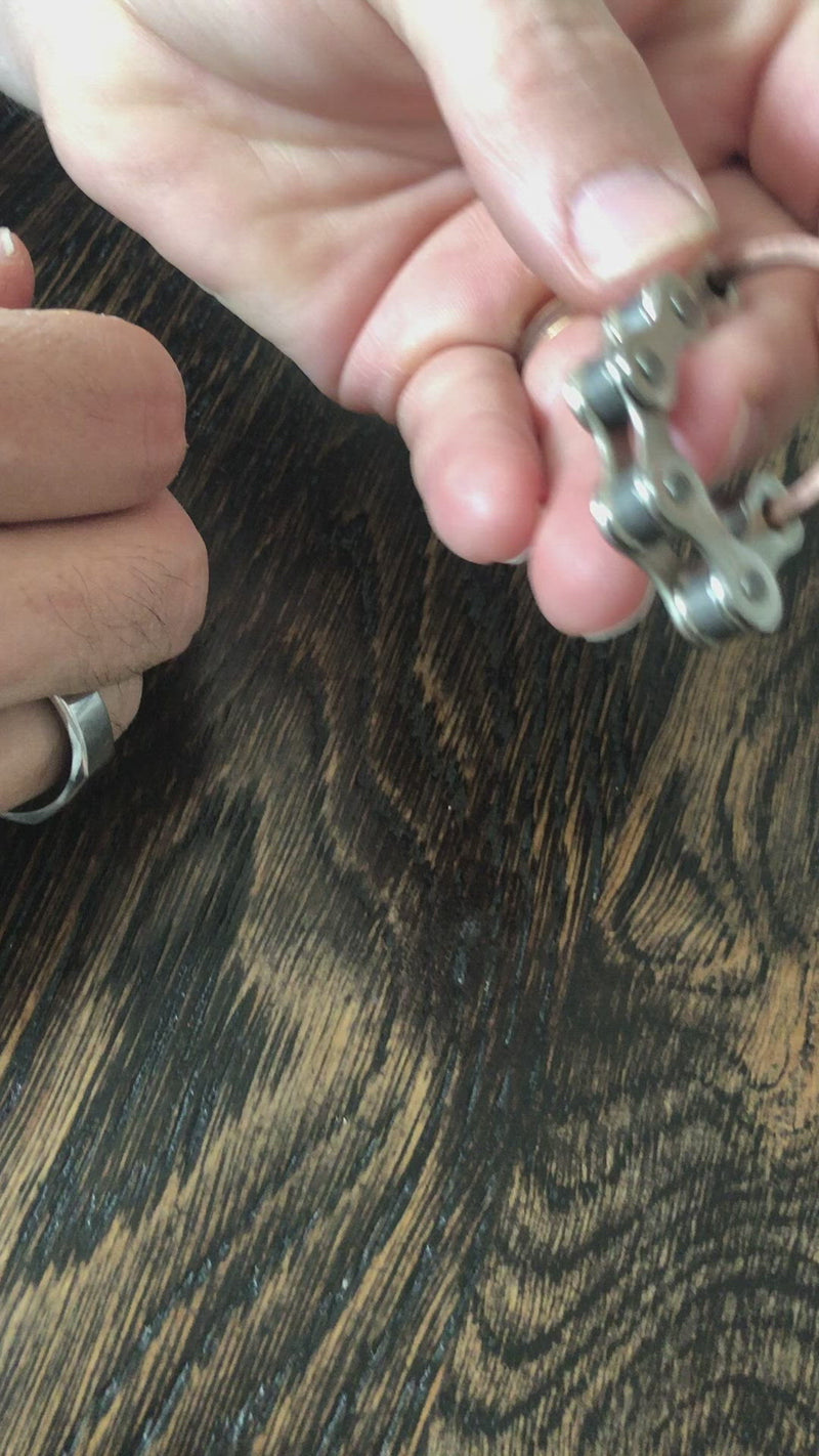 The Kaiko range are incredibly popular fidgets for older children, teenagers and adults. A simple design using stainless steel industrial bike chain gives it a funky look and feel.
